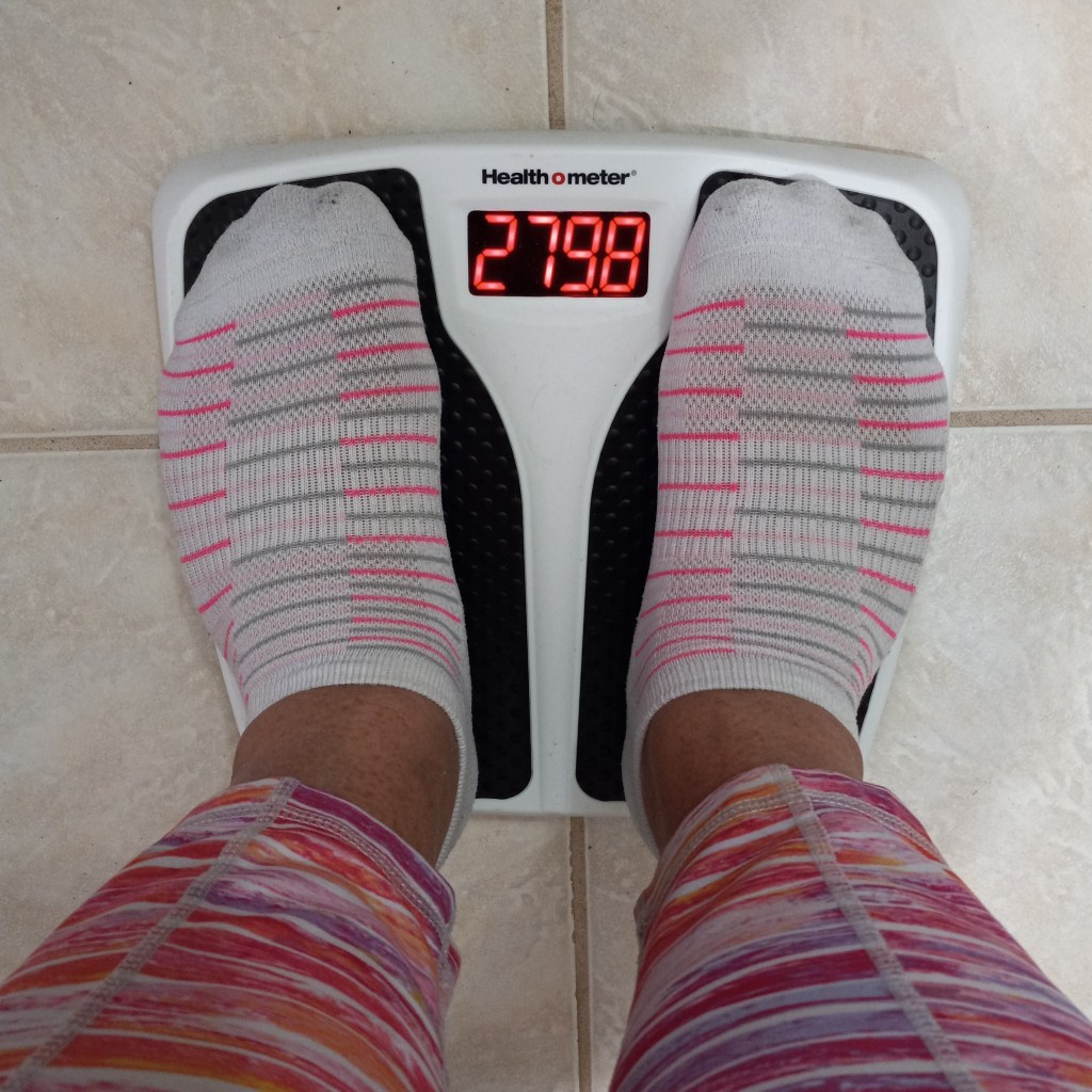 Because I ate breakfast at the hotel before heading back home, I delayed the weigh-in until today, Monday the 16th. Normally I would hesitate to weigh after a trip, because I would have gorged myself to the point I gained weight. While I did eat a copious amount of food at the buffet, I decided to have no fear weighing myself this morning.